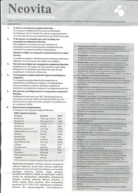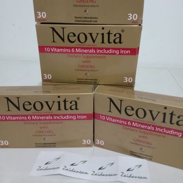 Neovita fortified capsules 10 vitamins 6 minerals including iron dietary supplement with ginseng for health and vitality one neovita capsule a day makes good any deficiency in a normal diet. This group of vitamins enhance various vital body functions that includes improving your blood circulation. With the added benefit of ginseng.