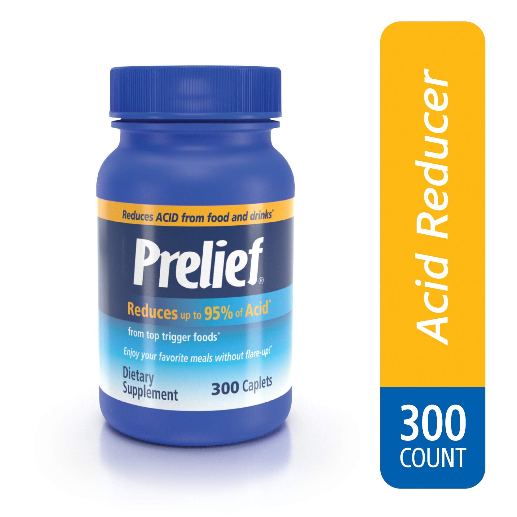 Herbal health nutrition. Product title prelief acid reducer caplets 120 count dietary supplement to reduce up to 95 of the acid in high acid food and beverages average rating. Prelief is taken in periodic dosages regardless of meals or foods eaten. Prelief acid reducer caplets 300 count 2396 008 1 count in stock.