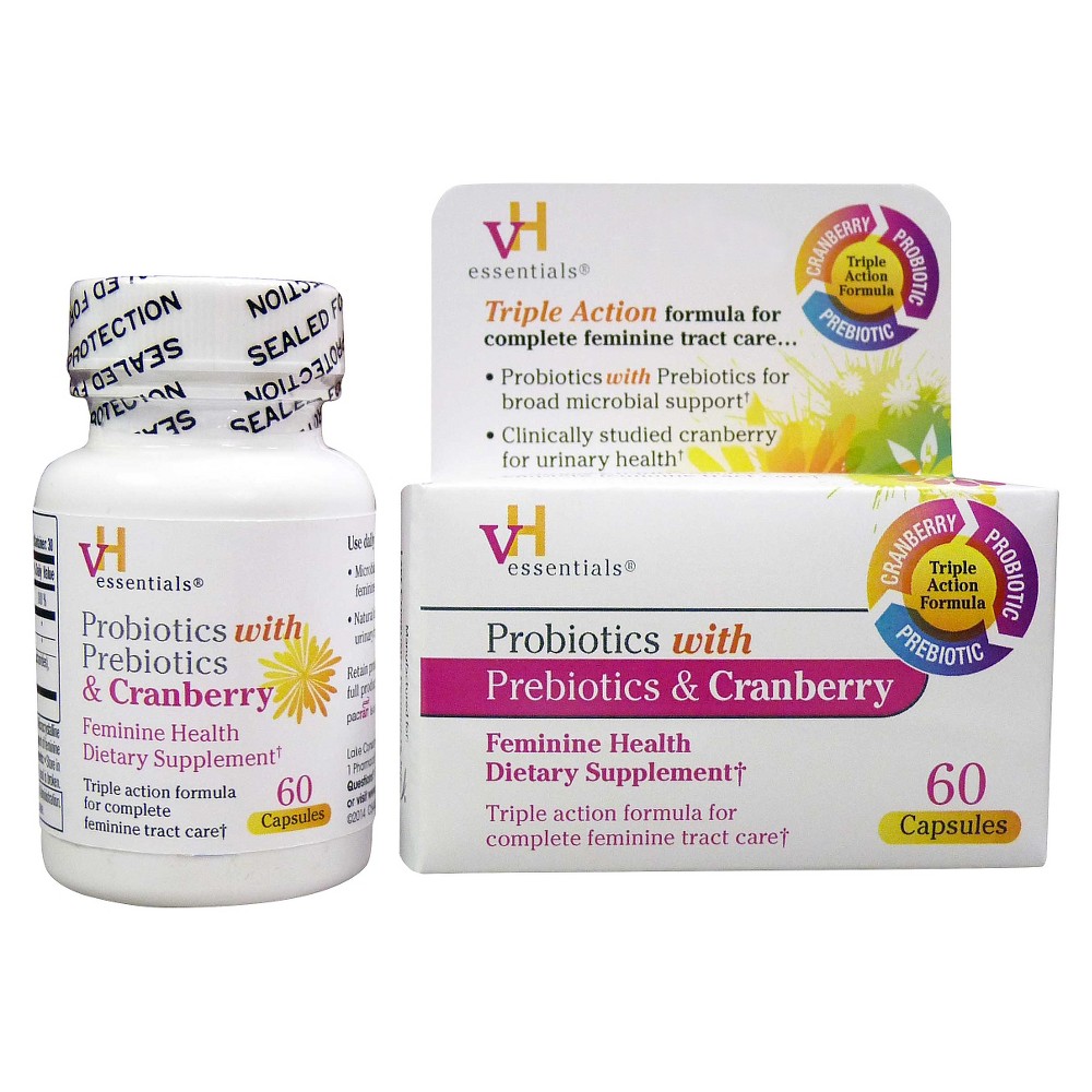 60 vh essentials probiotics with prebiotics and cranberry feminine health supplement vaginal probiotic capsules. Our unique triple action formula offers you complete feminine tract care. Vh essentials offers a variety of over the counter feminine products to balance ph treat vaginal odor and bolster feminine tract and urinary tract health.